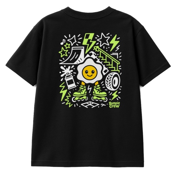The Egg Skatepark T-shirt in black is made for young skaters who take rollerblading seriously… but never forget the fun. The front features a playful graphic of an egg riding through the skatepark, instantly adding a strong roller vibe.