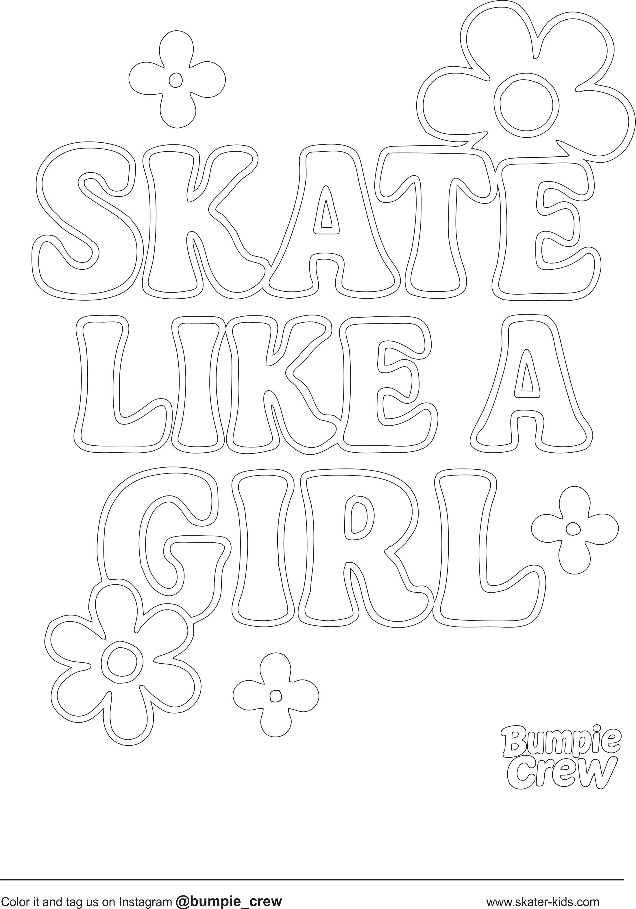 ➡️ Coloring Page 4 – Skate Like a Girl (BumpieCrew) → CLICK TO DOWNLOAD